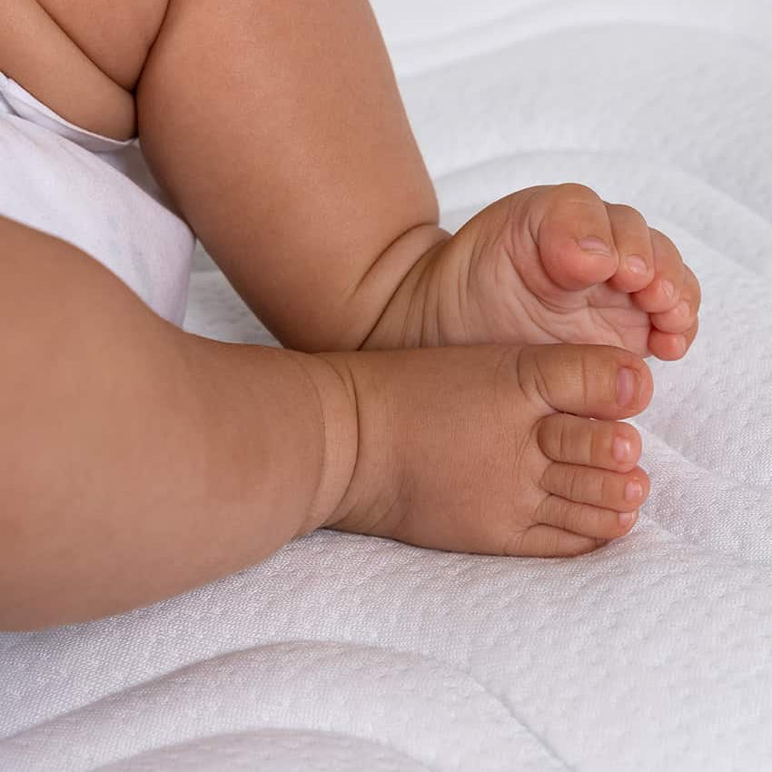 El Inicial tiene 7 cm de grosor. Ofrece una combinación de adaptabilidad y firmeza controlada para apoyar al bebé con comodidad sin perder la seguridad necesaria para un descanso infantil.