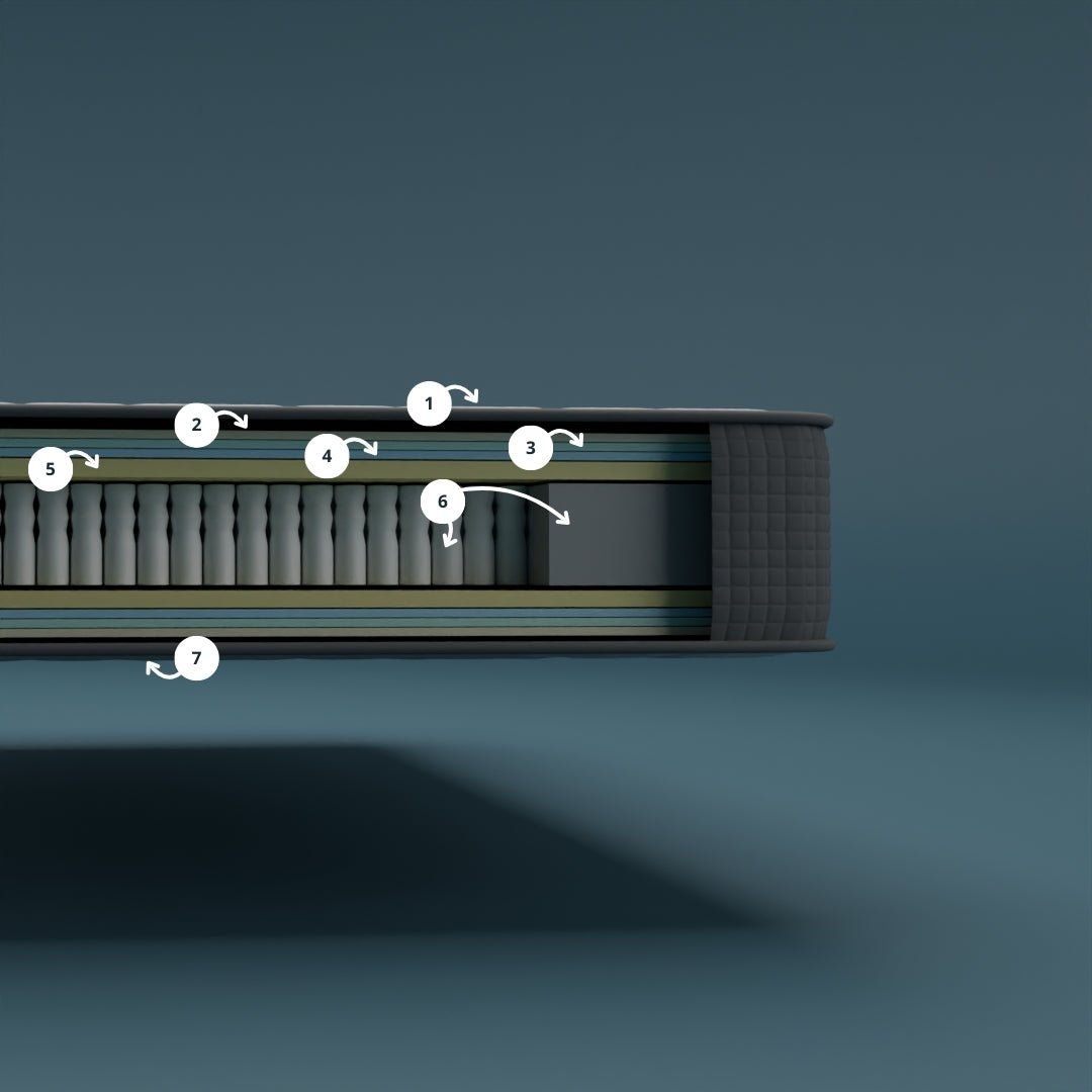 La capa de gel del Nuube First ofrece una adaptabilidad superior al contorno del cuerpo, aliviando la presión y proporcionando un descanso cómodo. Su tecnología de gel ayuda a regular la temperatura, manteniendo un ambiente fresco durante toda la noche y evitando el sobrecalentamiento. Ideal para quienes buscan confort y frescura en su descanso.